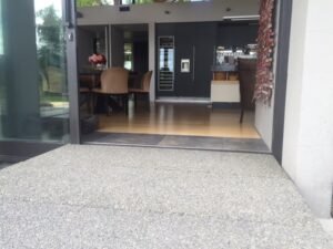 Large stylish Aggregate Concrete Slabs were used to create a durable, large, outdoor entertaining deck creating indoor – outdoor flow to the pool, lawns and gardens.