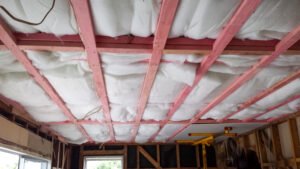 The staircase design and material choice complements the modern house architecture, while being a robust, low-maintenance surface with a contemporary finish that ties in beautifully with the home’s grey tones and expansive glass elements.