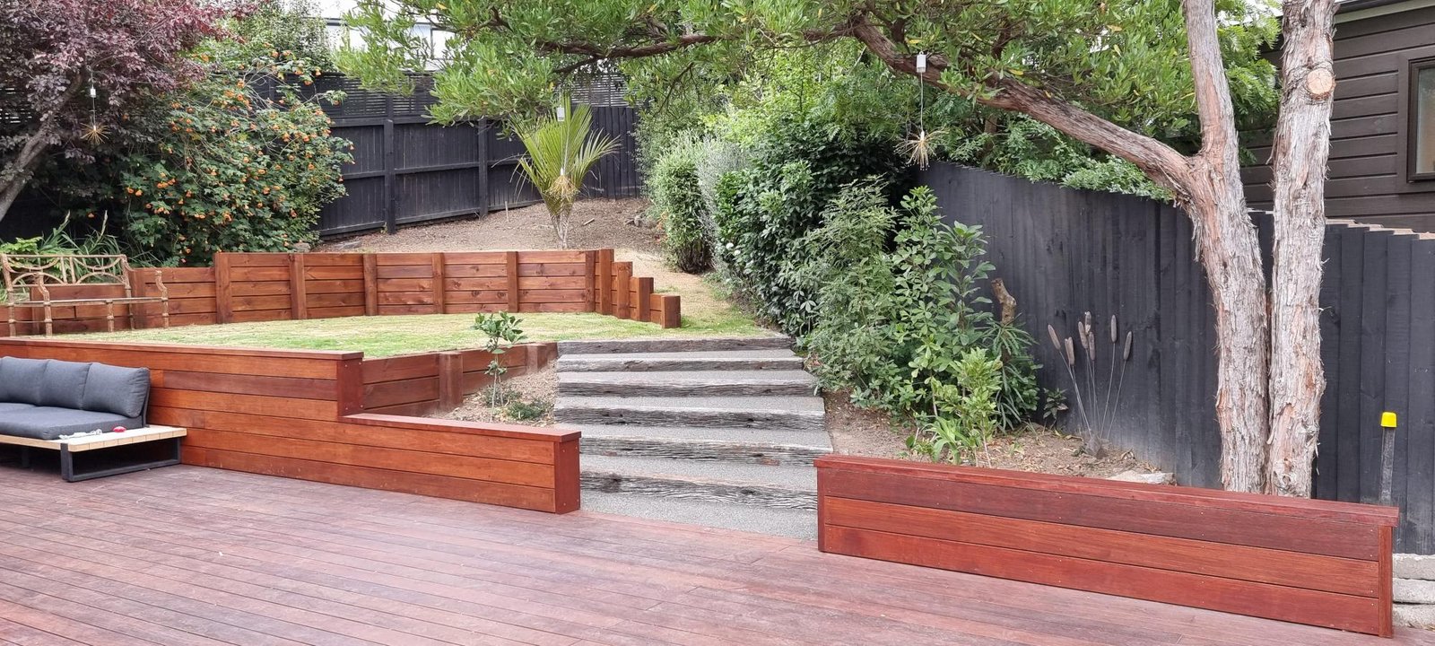 Paul transformed this steep, unusable Christchurch backyard into a functional sanctuary. By carving out levels with structural retaining walls and wrapping the home in premium Kwila timber decking, he achieved a seamless indoor-outdoor flow. This masterfully redesigned space replaces “dead zones” with architectural staircases and strategic planting maximizing the property’s true potential.