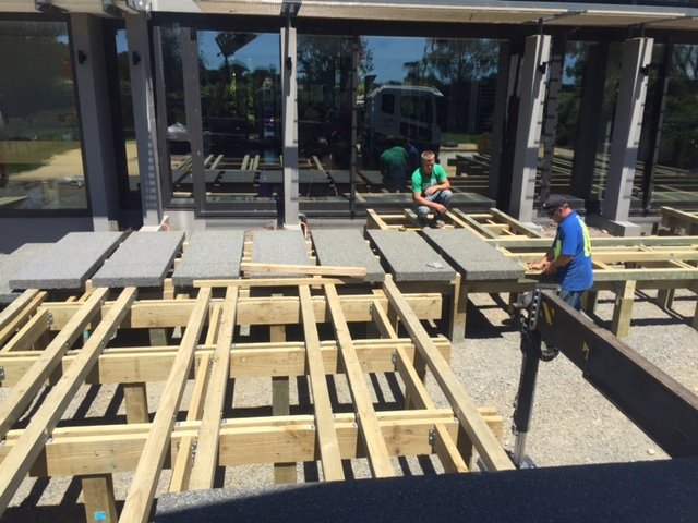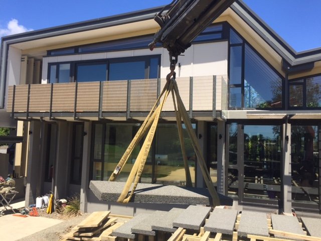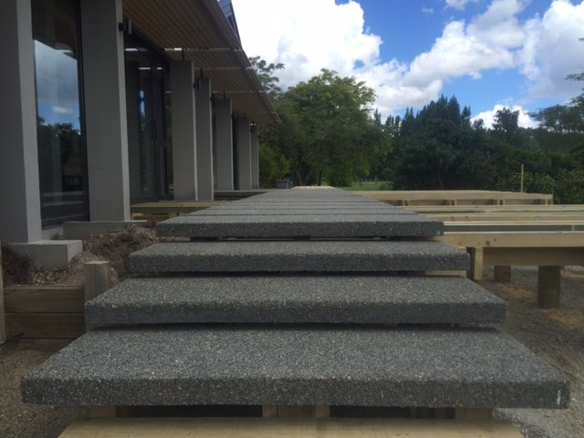 Large stylish Aggregate Concrete Slabs were used to create a durable, large, outdoor entertaining deck creating indoor – outdoor flow to the pool, lawns and gardens.